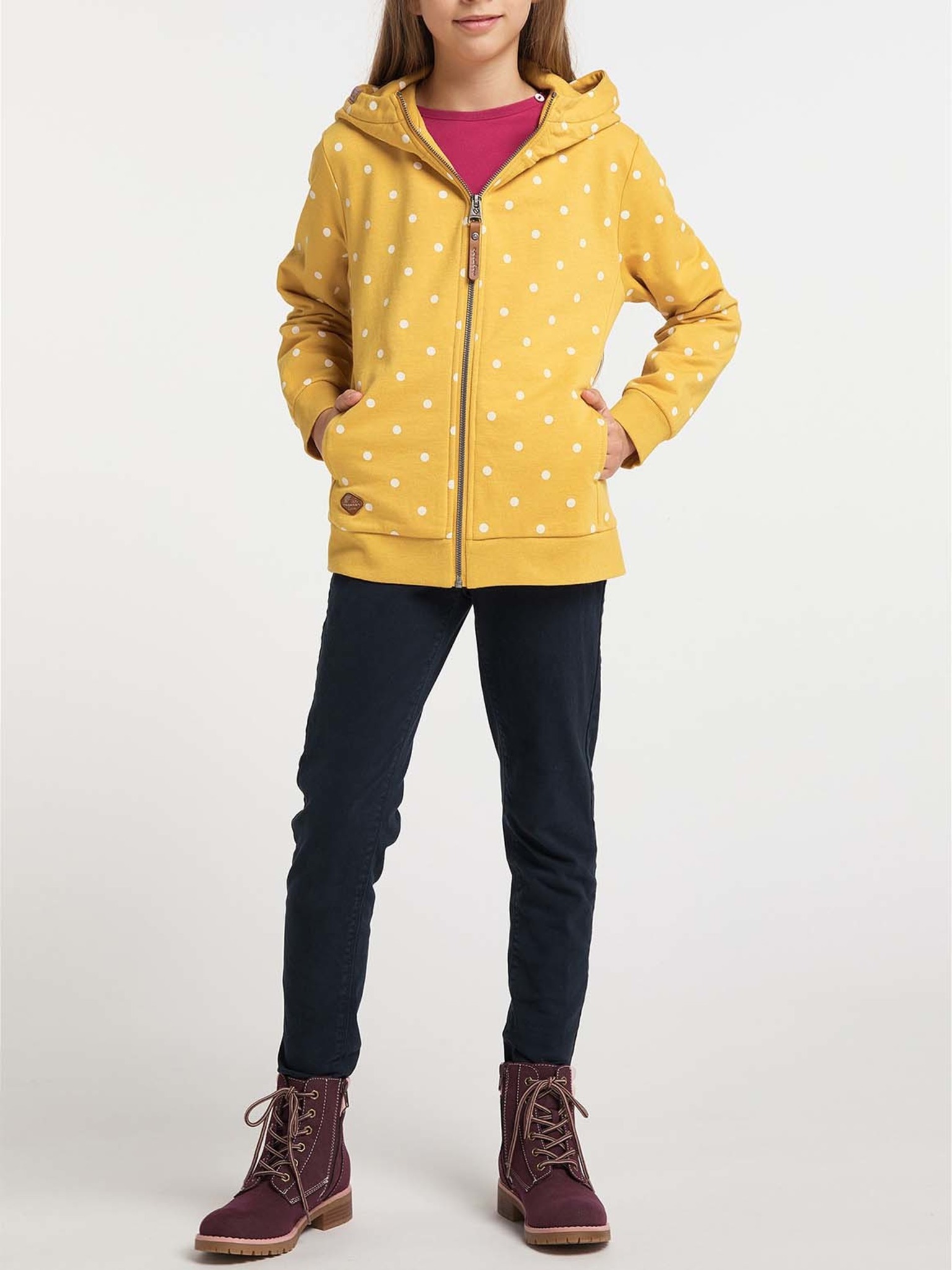 Farba: žltá Vzor: bodkovaný regular fit Zapínanie: na zips Niečo naviac: nášivka Materiál: 50% bavlna, 50% polyester Udržateľnosť: vegan certifikát PETA – záruka toho, že produkt neobsahuje žiadne živočíšne zložky a ani nebol v žiadnej fáze svojej výroby na zvieratách testovaný