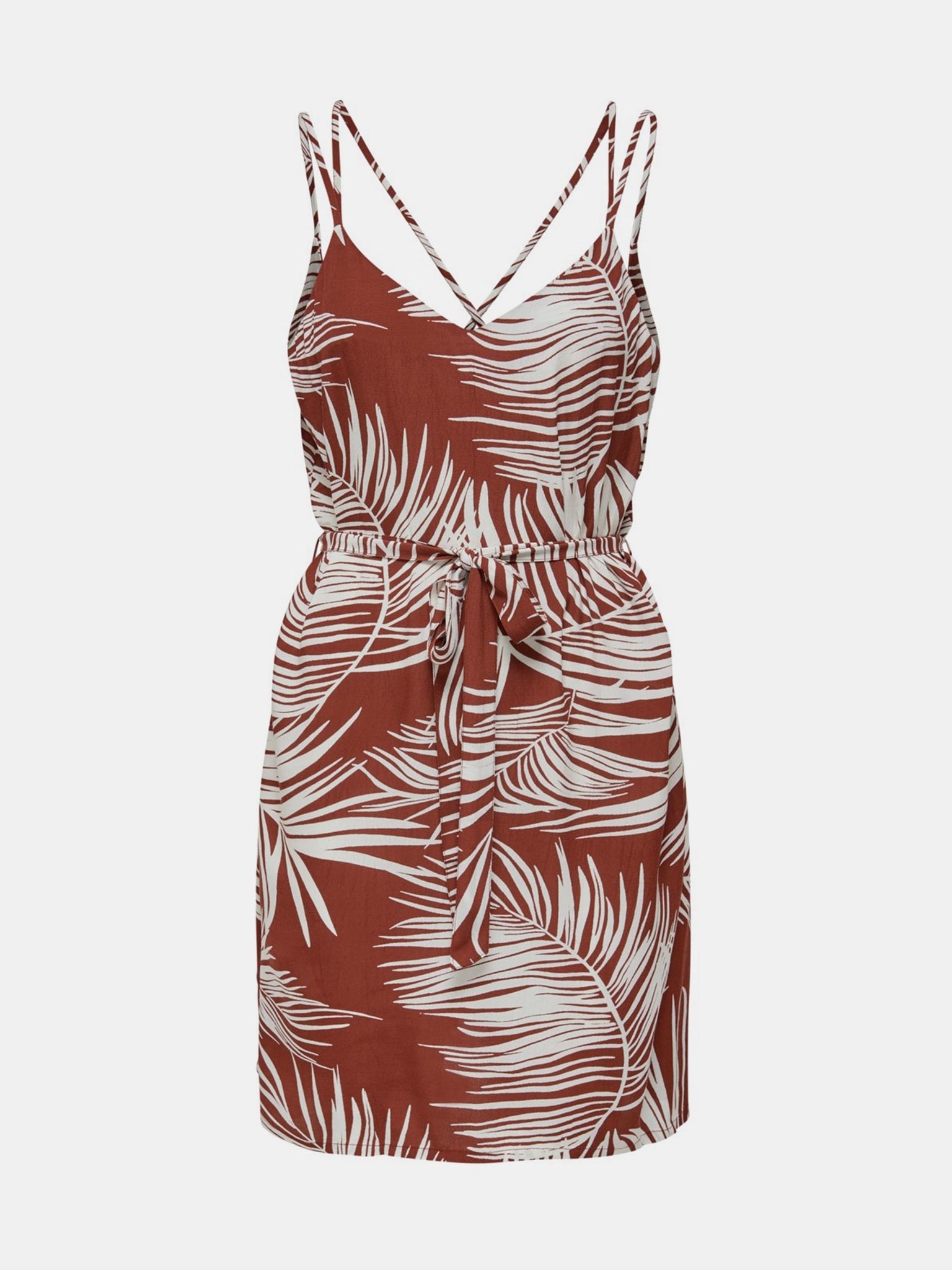 Model: Augustina Farba: tehlová Vzor: tropický Strih: rovný Dĺžka: ku kolenám Materiál: 100% viskóza LENZING™ ECOVERO™