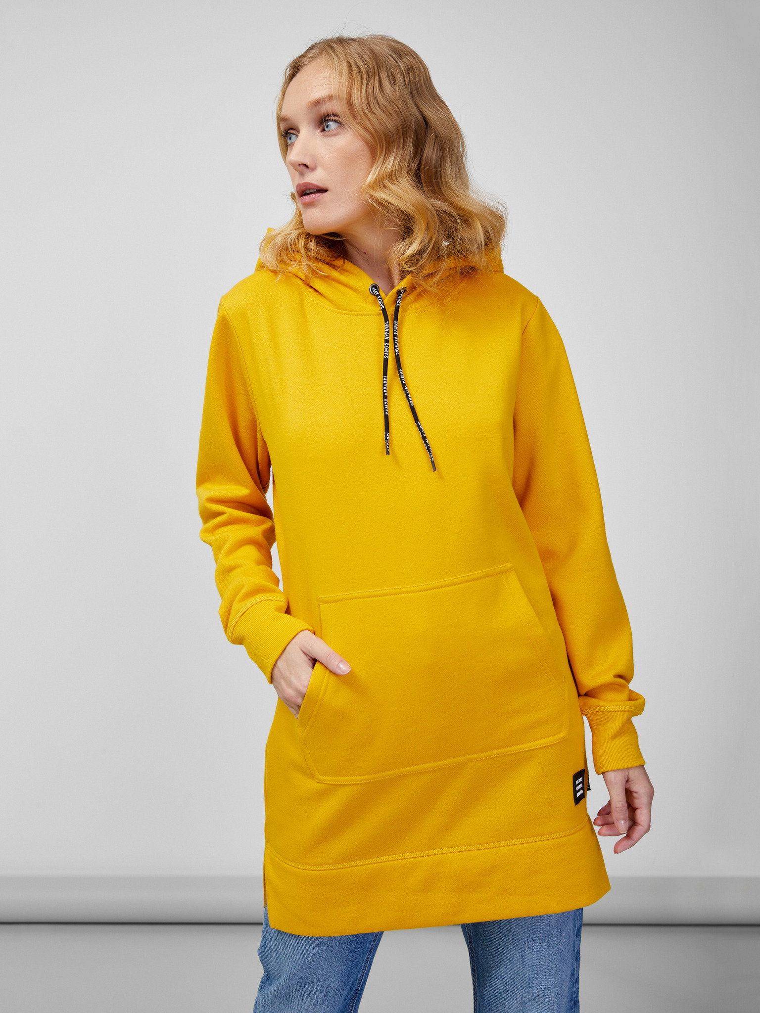 Model: Enna Farba: žltá Strih: regular fit, predĺžený Výstrih: okrúhly Rukáv: dlhý Zapínanie: bez zapínania Vonkajšie vrecká: 2 Niečo naviac: nášivka Materiál: 60% bavlna, 40% polyester