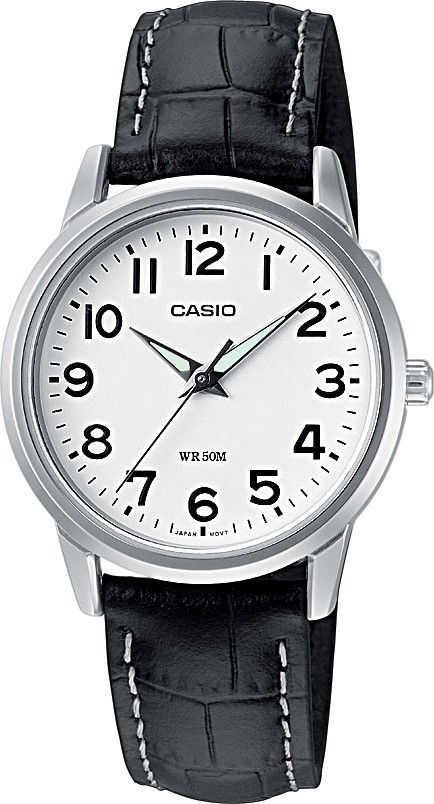 Značka: CASIO | Kolekcia: COLLECTION | Model: LTP 1303L-7B | Záruka: 2 roky | Farba: biela | Farba: čierna | Farba puzdra: strieborný tón | Napájanie: batéria | Materiál remienka: koža | Vodotesnosť: 50M/5ATM | Sklíčko: minerálne | Tvar: okrúhle | Určenie: dámske | Typ produktu: hodinky | Typ: ručičkové | Priemer: 30,00 mm | Hrúbka: 7,50 mm