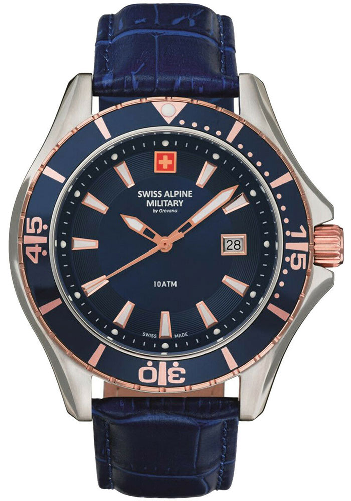 Značka: SWISS ALPINE MILITARY | Kolekcia: NAUTILUS | Model: 7040.1555 | Záruka: 3 roky | Farba: modrá | Farba puzdra: bicolor tón | Materiál puzdra: ušľachtilá oceľ | Napájanie: batéria | Materiál remienka: koža | Funkcie: Dátum – deň v mesiaci | Vodotesnosť: 100M/10ATM | Sklíčko: minerálne | Tvar: okrúhle | Typ zapínania: Štandardné zapínanie | Číslice na ciferníku: indexy | Určenie: pánske | Minimálny obvod: 17 | Typ produktu: hodinky | Typ: ručičkové | Maximálny obvod: 22 | Šírka remienka: 22-20 | Priemer: 45 | Hrúbka: 12