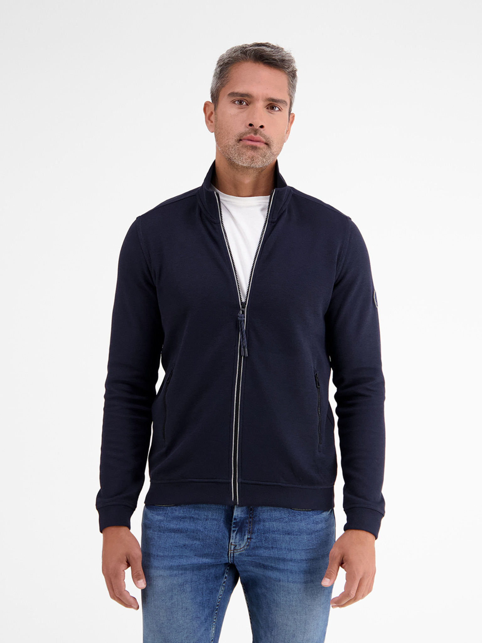 Farba: tmavomodrá regular fit Rukáv: dlhý Zapínanie: na zips Materiál: 90% bavlna, 10% polyester Model má na sebe veľkosť: M Model meria: 185 cm