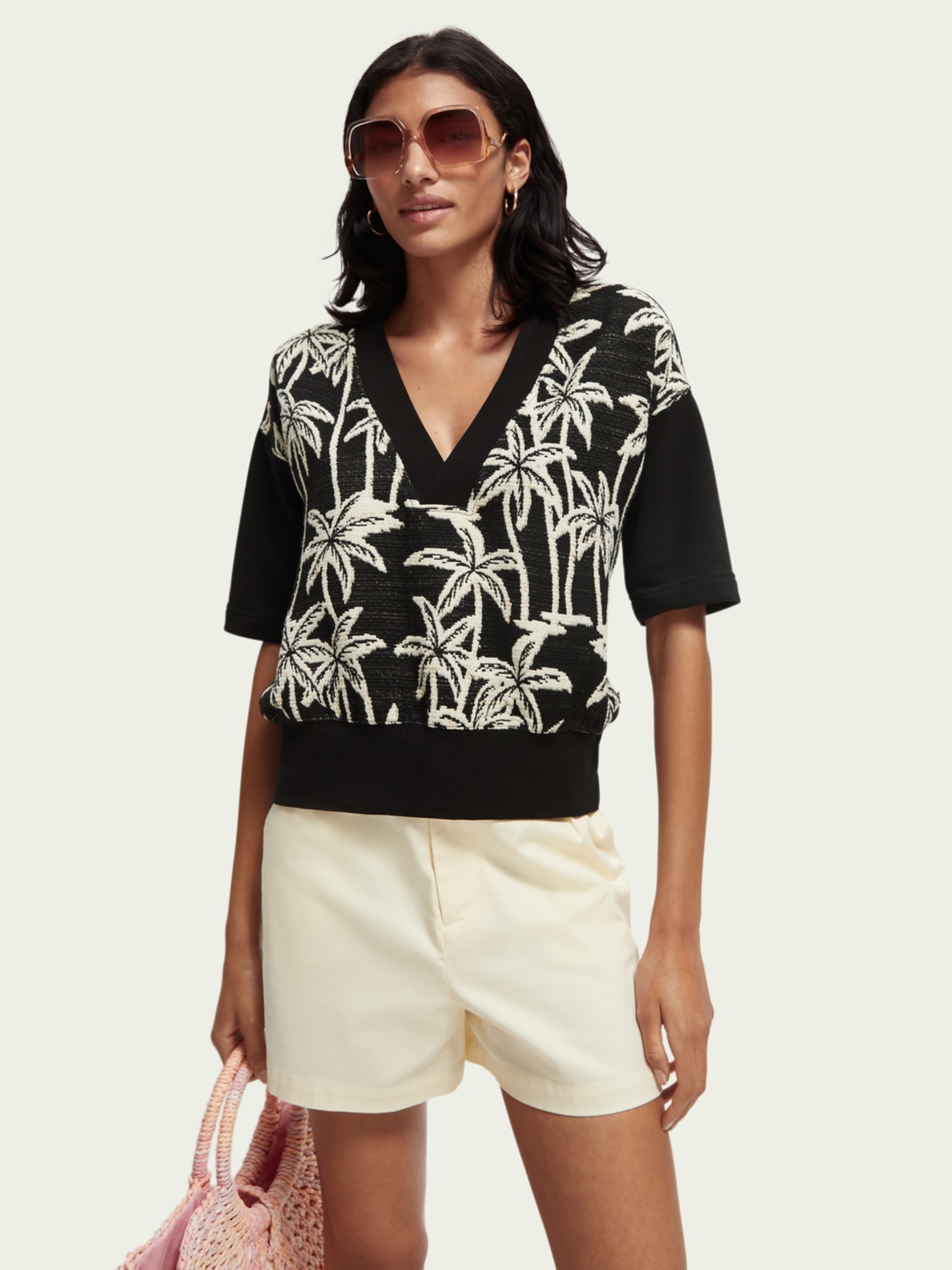 Farba: čierna Vzor: tropický regular fit Výstrih: véčkový Rukáv: krátky Zapínanie: bez zapínania Udržiteľnosť: organická bavlna Materiál: 85% organická bavlna, 15% polyester