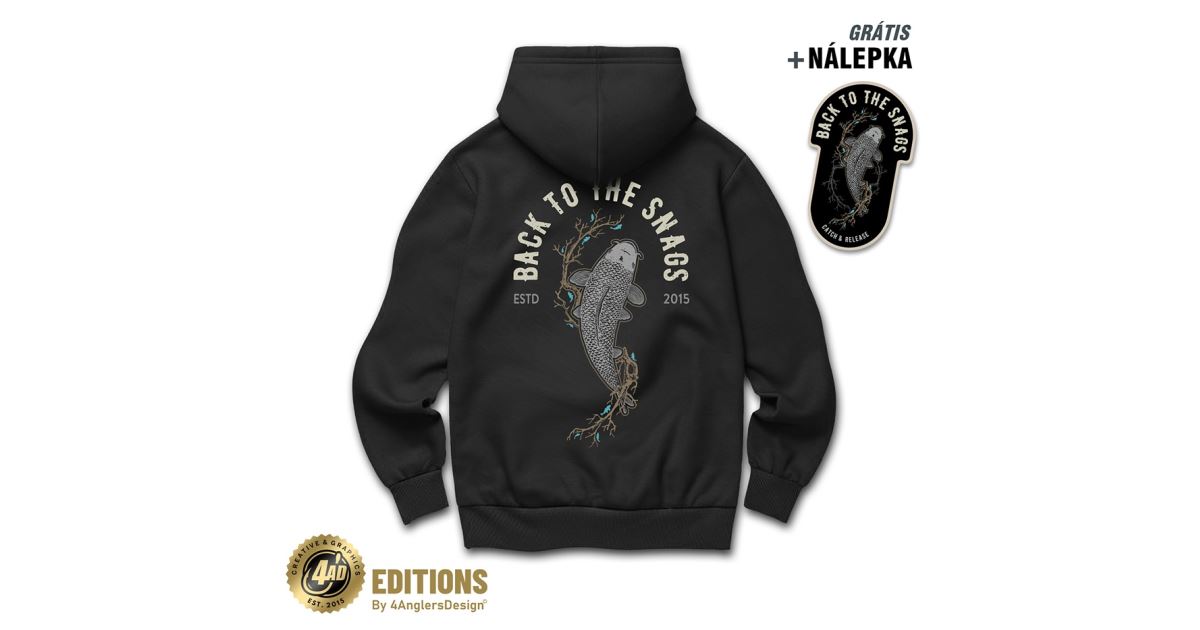 Objevte stylovou mikinu 4ANGLERSDESIGN Back To The Snags – pohodlie a jedinečný dizajn pre každého rybára.