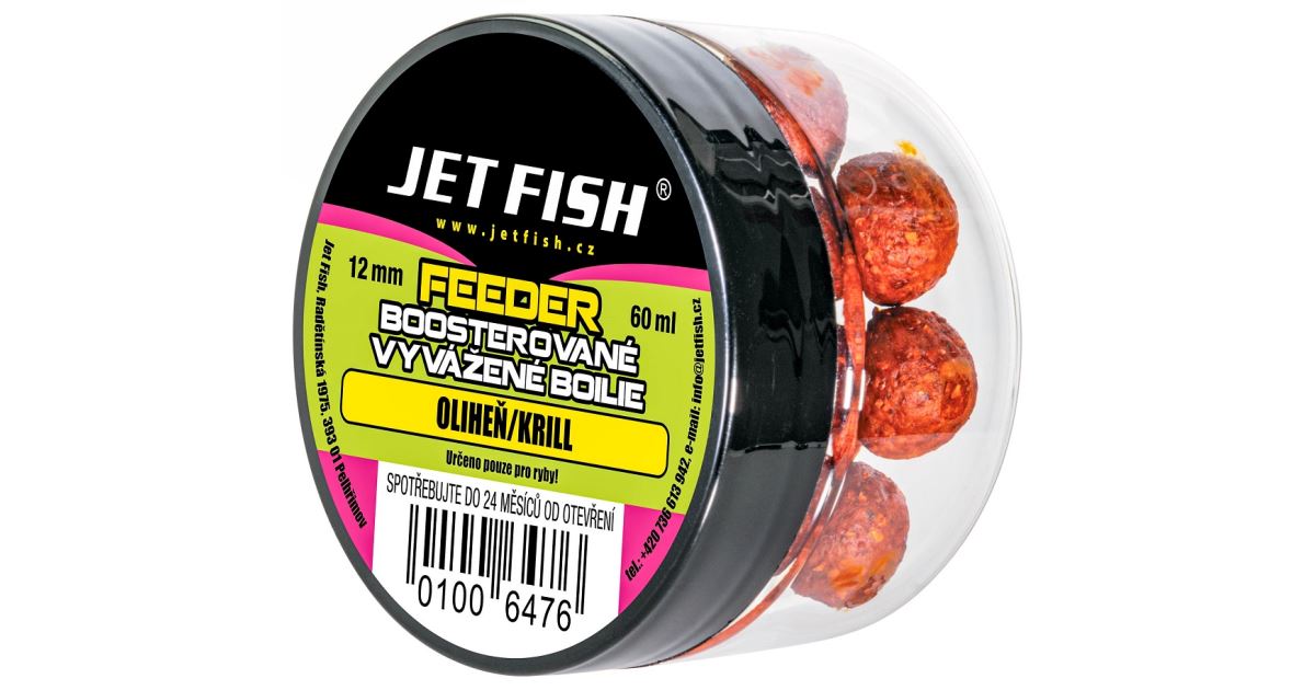 Jet Fish Feeder Boosterované Vyvážené Boilie 60 ml, 12 mm – ideálna nástraha pre rybárov, zvýšená atraktivita a rybolovný výkon.