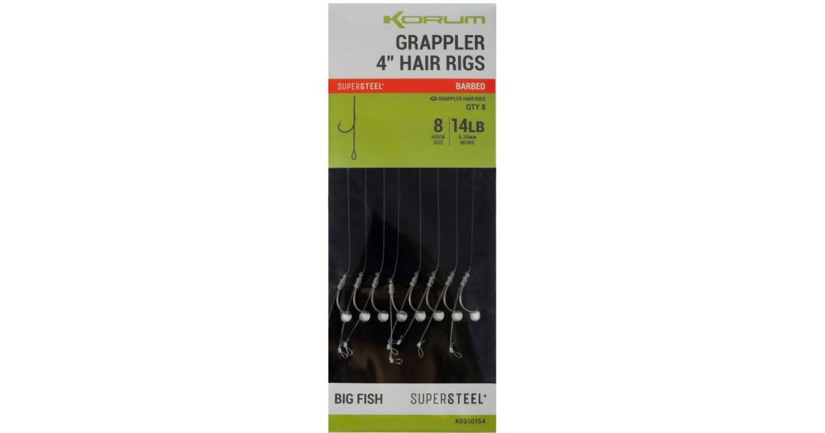 Korum Náväzec Grappler 4” Hair Rigs Barbed je ideálny na presné a spoľahlivé rybárske nástrahy.
