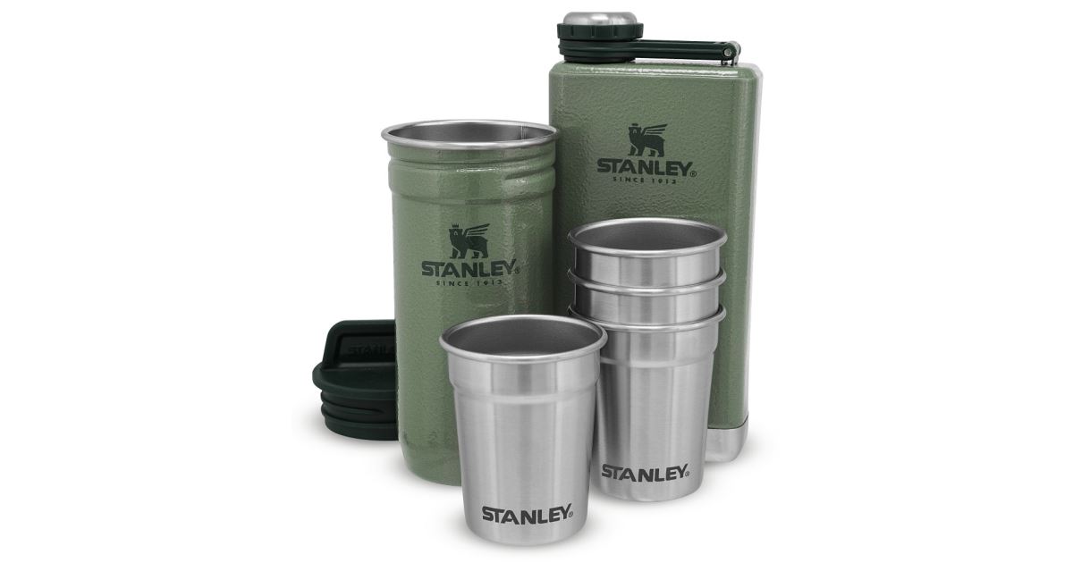 Objavte Stanley Darčekový Set Adventure Series: 250 ml placatka a 4 panáky, ideálne pre dobrodružstvá v prírode.