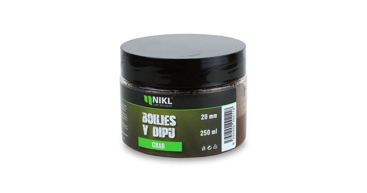 Nikl Boilies V Dipe Crab 250 g: vysokoúčinné nástrahy s ostrou arómou na uspešný rybolov.