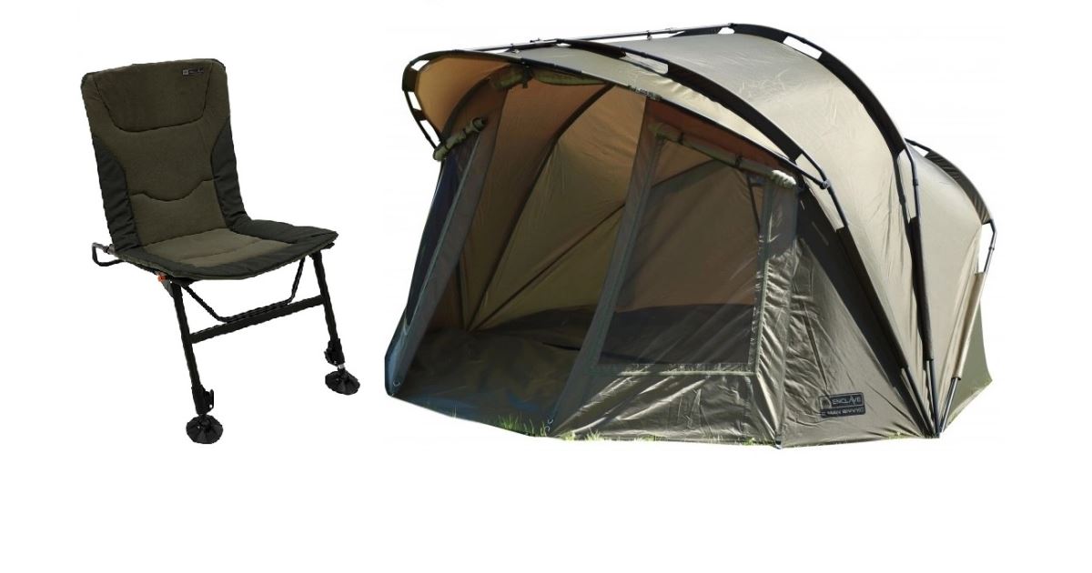 Objavte Mikado Bivak Enclave 2 Man Bivvy XL+ s komfortným kreslom zdarma – ideálne pre vaše rybárske výpravy!