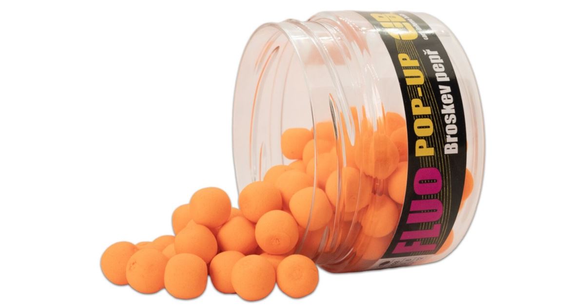 • Plávajúce boilie s fluo efektom v broskyňovej a korenistej príchuti