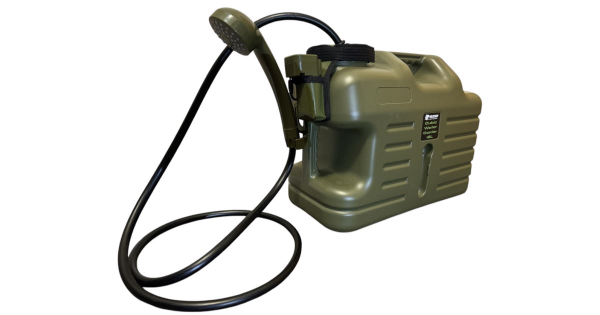 - Holdcarp Kanyser so sprchou je prenosná kempingová sprcha s kapacitou 18 litrov.