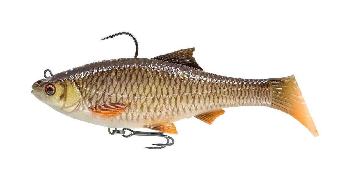 Plotica sú jednou z hlavných koristí veľkých šťúk, takže táto nástraha je vždy vhodnou nástrahou po celý rok! Vďaka kombinácii rýchleho potápania, mäkkého PVC a ľahkej, ale veľkej lopatky so sklenenou hrkálkou bude táto nástraha dokonale plávať, a to aj s napnutým vlascom! Preto je možné s touto nástrahou loviť ako v plytkých vodách, kedy smerujete špičkou mierne nahor, ale tiež ju použiť na brúsenie v hlbokej vode na skutočné monštruózne šťuky. Vďaka veľkému lopatkovitému chvostu sa nástraha zvodne pohupuje a hrkálka v chvoste vysiela provokujúce cvakanie, ktoré priláka zvedavé dravé ryby a pomôže lokalizovať nástrahu v kalnejšej vode. Väčšie veľkosti sú ideálne na veľké šťuky, ale nebuďte prekvapení, keď na niektorú z menších veľkostí zaseknete zubáča alebo ostrieža!